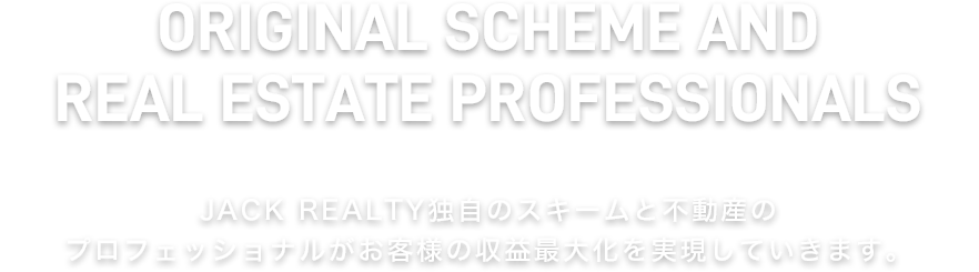 JACK REALTY株式会社では土地、中古住宅、区分マンション、一棟収益マンション・アパート、底地借地、立退き案件、共有持分物件まで幅広い物件の購入・開発・販売をONE-STOPで行う会社です。 不動産買取再販事業Purchase and resale 不動産開発事業Real estate development 不動産賃貸事業Real estate rental リノベーション事業Renovation 不動産仲介事業 ZERO SELLの運営ZERO SELL 会社概要 JACK REALTY株式会社の会社概要はこちら 採用情報 採用情報はこちら